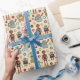 Roliga Retro robotar illustrerat mönster (kräm) Presentpapper