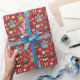 Roliga Retro robotar (rött) illustrerat mönster, Presentpapper
