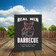 "Riktiga män luktar som grill" runtom en gris-maskot med band. Inklusive vit text under designen, "Det är coolt att du gör det också, pappa. Grattis på fars dag!". Färgerna kan redigeras i designverktyget också.