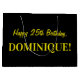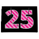En sida av denna roligt och den enkla födelsedag-themed gåvan hänger lös design har en stort antal "25" presentera en mörk rosa och tänder - det rosa randmönster. Födelsedaghälsningmeddelandet "den 25th födelsedagen för lycklig," och ett personlignamn visas på andra sidan, båda i gult färgad text. Bakgrunden har en svart färgläggning. Gåvan hänger lös något liknande som denna styrka används, när du slår in presenter eller gåvor som ger sig i heder av somebodys femte födelsedag tjugo. [~Z0000378]