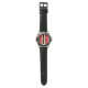 Roliga svarta vita ljusröda gula tävlingsränder armbandsur
