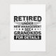 Fira pensionen med en humoristisk twist på denna roliga talesätt-te-shirt. Perfekt för pensionerade individer som njuter av sin nya roll, denna skjorta framhäver den lekfulla hanteringen av barnbarn. Bär den med stolthet och låt alla veta att du är pensionerad under ny ledning se barnbarn för detaljer