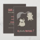 Meddela din förlovning / bröllop på ett okonventionellt sätt med denna roliga "Spara datum" inbjudan med söta tecknade katter illustration. Glad brud hoppar av glädje och en verkligen förbryllad brudgum.