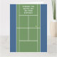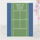 Kreativa tennis födelsedagskort med banedesign och rolig födelsedagsrad för enkel anpassning. Redigera texten för att lägga till tennisspelarens namn.