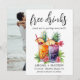 Gör dig redo att ge dina bröllopsfirande en smak av tropikerna med vårt "Roliga Tropiska Ananasdrinkar Foto Bröllop Spara Datum"-kort. Denna inbjudan är utformad för att tillföra en touch av humor och tropisk charm till din speciella dag.