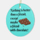Den roliga noveltydesignen presenterar text i den svart stilsorten, som något att säga, ingenting är bättre än en vän, undantar kanske en vän med choklad! Bredvid texten är ett grafiskt av en smaskig chokladpub med en bita som tas ut ur den, och choklad panerar kvarlämnat. Denna underbara vänskapdesign är perfekt för chokladtokigbästa vän! Underbar jul, helgdag och födelsedaggåvaidé för vänner.