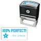 Den här motiverande utformningen av gummi frimärke innehåller det uppmuntrande budskapet "100 % PERFEKT!" och en personlig lärare i namn. Den har också en dekorativ stjärnform. Den skulle kunna användas av en lärare eller en lärare när de markerar uppdrag, för att erkänna att student har gjort bra ifrån sig.