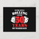 Roligt 50-årsjubileumpresent för par som slog tärningen, hade tur och har varit gifta i 50 år och fortfarande rullar tillsammans! Perfekt för ett gift par som firar 50 år av äktenskap med en 50-års bröllopsjubileumsfest eller resa till Las Vegas! Denna noveltetpresent är perfekt för man och hustru som gillar långa promenader genom kasinot eller att ta en jubileumsresa till Las Vegas! Funktioner "We're Still Rolling After 50 Years of Marriage" rolig jubileumsmeme med hjärtan och tärningar.