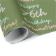 Den här personligens födelsedagsförpackning innehåller ett meddelande som "76-årsdagen för Lycklig, ANamehere!", där namn och födelsedagsnumret kan vara personlig. Bakgrunden är mörken av färgaden oliv grönt. Att packa pappert som detta skulle kanske kunna användas för att slå in presenter för att fira någons födelsedag. [~Z0000243]