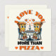 Dela med en nypa humor och kärlek denna Alla hjärtans dag med vårt Jag älskar dig mer än pizza Alla hjärtans dag-kort! Med en rolig serieillustration av två pizzapersoner som njuter av en middag i ljuset av levande ljus (med mer pizza!), är detta kort perfekt för pizzälskare med en bra portion humor. Den söta och roliga designen kombinerar kärlek och skratt med en udda pizzatemad twist. Känslan på insidan lyder: "Du är den enda som kan stjäla en bit av mitt hjärta! (Men rör inte min pizza.)" Oavsett om det är till din partner, bästa vän eller en annan pizza-enthusiast, är detta kort ett härligt sätt att säga "Jag älskar dig!" Redigera text från produktsidan eller ändra teckensnittsstil eller fär