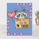 Detta roliga Alla hjärtans dags vikta gratulationskort är det perfekta valet för alla med humor och en kärlek till söta djur. Kortet har en lekfull tvättbjörnsdesign och ett smart talesätt som säkert får din Alla hjärtans-dag att le. Visa din kärlek och din tokiga sida med detta roliga och unika kort. Det är det perfekta sättet att göra din Alla hjärtans-dag extra speciell.