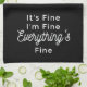 Ge skratt och personlighet till ditt kök med denna roliga kökshandduk med texten ”It’s Fine I’m Fine Everything’s Fine”! Tryckt på en slitstark och maskintvättbar microfiber kökshandduk, tillför detta udda citat humor och charm samtidigt som den är praktisk för att torka disken, händer eller torka upp spill. Det är en bra accent för det vardagliga köksdekoren, underhållning av gäster eller för att lysa upp husgeråd.