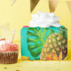 roligtens bild av hela ananas och även uppskurna segment av ananas. har även rosa och vita blommor. Bild från freepik.com