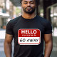 Stick ut på alla evenemang med denna roliga “Hello My Name is Go Away”-t-shirt. Designen visar en enkel illustration av en namnskylt som du kan anpassa med din egen text. Gör ett statement, bryt isen och tillför humor till fester, sociala tillställningar eller vardagliga affärsevenemang. Denna mångsidiga design låter dig uttrycka din unika stil med en touch av kvickhet. Oavsett om du är introvert, asocial eller bara blyg, kan du visa folk hur du känner och minska på de sociala interaktionerna innan de presenterar sig. Anpassa namnet för att skapa ditt eget unika “lämna mig ifred”-meddelande.