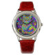 Roligt Artsy Bright Färgad Haight-Ashbury Stil Cat Armbandsur