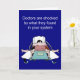 Läkare är chockade över vad de hittade i ditt system, står det på det här roliga välmående-kortet, som har en teckning av två uttrycksfullt förvånade läkare som läser patientens journal. Inuti räddar kortet läsaren från den komiska antydan om medicinska problem genom att dra nytta av mottagarens kärlek till choklad. Kortet är designat med en BFF i åtanke, familjemedlem, kollega eller någon som återhämtar sig från ett hälsoproblem som kräver ett sjukhusbesök eller några turer till en läkare. Hur som helst kommer han eller hon att glädjas åt orden "Normalt skräp. De förväntade sig att bara hitta choklad."