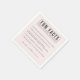 Lägg till en roligt i cocktail-timmen eller Rehearsal-middagen med dessa pappra servetter. Designen har ett huvud i fetstil "Roligt Facts Om bron och Groom", sedan en lista med 5 roligtar fakta i ett serif-teckensnitt och en skriptcalligrafi namnteckning över en rosa bakgrund. Du kan ändra bakgrunden färg så att den matchar bröllop temat. Designad för att samordna med vår " och dammiga blommigt med blå vattenfärg". Anpassa med din information med hjälp av den mall som fält medföljer om du behöver hjälp med att klicka på knappen nedan.