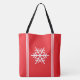 Den här sportiska säsong-designen har en centrerad vit nordisk snöflinga inuti det vita lodrät tävla rand mot ljusröd bakgrund.