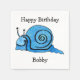 Den här anpassningsbarnas pappra napkin för din matlagning eller party behöver en roligt söt tecknad snigel som leker i ljus och mörk med blåskript linjer. Anpassa Grattis på födelsedagen-texten och ditt namn med mallarna.