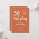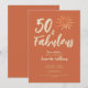 Roligt och färgstark 50 & Fabulous-design i terracotta med hand plockade sol som lätt kan personlig med all viktig information i trendigets skript.