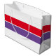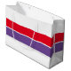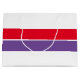 Den här sportiska, moderna designen har en ljusröd färg som täcker hela extra och royal lila Center vågrät rand mot en vit bakgrund.