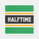 Den här sportiska, atletiska designen har fet HALFTIME-text inuti ett markerat svart mittfält rand med vita ränder och för tävla av gult mot ljusa yttre ränder av grönt. Texten kan vara personlig.