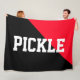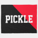 Den här roligtens pickleball-design har ett pulserande, ljusröd färg-block i högernas övre hörn mot en svart bakgrund. Den valfria texten "PICKLE" med fetstil kan vara personlig.