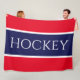 Roligt Bright Red White Navy Blue "HOCKEY" Rand Fleecefilt