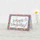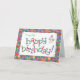 Ett färglöst födelsedagskort som kan anpassas, med flerfärgade bokstäver och ett ljust, bubblande, udda mönster. Du kan ändra det inre meddelandet om du vill.