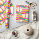 Julgranar med multifärgad rand i skuggor av rosa, orange, grönt, rött, gult och turkos som är lagrade på en benvit bakgrund dekorerar detta unika julklapp. Gör en roligt vibrerande stänk med detta vågade geometriska omslag av mönster pappert. Modern. Maximal. Fet. Bright och Merry. Denna julklapp i roligt förenar tradition med modern maximalism. Ett unikt, dynamiskt stil för din jul och dina Helgdag! Matchande presenter som är tillgängliga i vår samling.
