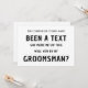 Detta Kunde Uppenbarligen Ha Varit ett Textmeddelande Hon Tvingade Mig att Göra Detta... Vill Du Vara Min Bröllesman? roligt Bröllesman Förslag Kort med svart och vit Text. Detta Förslag till Bästa Man Kort Har ett Anpassningsbart Namn och Text på Framsidan och Baksidan. Skriv Ditt Personliga Meddelande på Baksidan. Klicka på knappen för Anpassning för att Lägg Till Din Text eller Meddelande. bästa roliga Mannen av Äran digital nedladdning Kort.