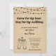 Kom för ölen. Stanna för bröllopet. Roligt formulering för en rolig bröllopsinbjudan. Illustrationen är handritad på en underbart rustik kraftbakgrund.