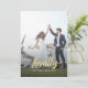 Det roliga "Äntligen Gift" bröllops-kortet för att spara datum har en blandning av vacker falsk guld folie kalligrafi och modern typografi med utrymme för ett foto. På baksidan av vykortet har designen alternativ för mer detaljer. Anpassa designen genom att ersätta texten med dina detaljer.