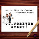 Det här kortet fångar den exakta stunden när verkligheten slår till: äktenskap betyder för alltid... typ, för alltid och evigt. En förvirrad brud och brudgumme stirrar ut i chock när frågan sjunker in och bygger till den dramatiska slutpoängen som säger vad alla andra i hemlighet tänker. Det är ironiskt, lekfullt och perfekt för vänner som vill gratulera paret medan de ger dem en liten vänlig verklighetscheck. Perfekt för förlovningar, bröllop eller någon som uppskattar humor som är lite djärv och mycket igenkännbar.