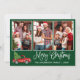 Modern Roligt Calligraphy Script 3 Photo Family Photo Collage God jul Card - Watercolor Vintage Red Lastbil med Julgran - Forest Grönt Background
