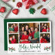Modern Roligt Grönt Calligraphy Script 5 Photo Family Photo Collage Feliz Navidad julkort innehåller Watercolor jul Holly Berries