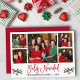 Modern Roligt Red Calligraphy Script 5 Photo Family Photo Collage Feliz Navidad julkort innehåller Watercolor jul Holly Berries