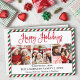 Modern Roligt Calligraphy Script Glad helg 3-fotokort - Grönt och Red Candy cane Glitter Rand - Red Script
