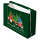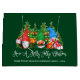 Modern Roligt Calligraphy-skript har en glall Jul Watercolor Gnomes Large Helgdag Gift Bag med Gräs Träd. Familj Namn och År - Grönt av skog och färgstark ljus.
