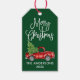 Modern Roligt Calligraphy Script Watercolor Vintage Red Lastbil med Julgran Gift Märkre - Forest Grönt Background