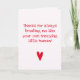NyParkLane - Rolig gratulationskort till din styvmamma på mors dag, med en rolig text som säger: Tack för att du alltid behandlar mig som din egna irriterande lilla människa! i rolig, röd skrivstil. Insidan säger: Glad mors dag till min bonusmamma!