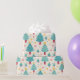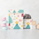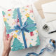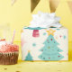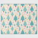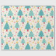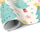 Roligt färg dekorerar glatt lilla Julgranar som parad över denna lätthjärtade inslagning pappert. En ljusblått grönt gynnar det festliga träden mitt i fält av rosa och gult stjärnor på en benvit bakgrund. De kommer från mönster i retro-vattenfärgen.
