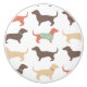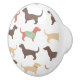 Perfekt för alla som kärlek hundar och weiner hundar har den här mönstrade designen gigantisk korall rosa, tårblått, mintblått, gult, kräm och brunt färg med hundar med krage och svettare med damm på dem.