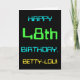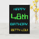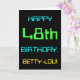 Den här enkla och roligt-hälsningskortet har ett meddelande som "LYCKLIG 48:e BIRTHDAY, BETTY-LOU!". Den har också en roligt som ser inspirerad ut av digital datoranvändning. Namn på framsidan och meddelandet på insidan kan vara personlig. Den kan skickas eller ges till någon som firar sin fyrtioåttonde födelsedag och som kanske arbetar (eller arbetar före pension) som databasadministratör, datorprogrammerare, nätverksadministratör, utvecklare av software, elanvändare ingenjör eller som på annat sätt har nytta av att använda datorer. [~Z0000100]