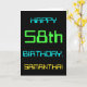 Den här enkla och roligt-hälsningskortet har ett meddelande som "LYCKLIG 58 BIRTHDAY, SAMANTHA!". Dess utseende inspireras av fält i den digitala datoranvändningen. Namn på framsidan och meddelandet på insidan kan anpassas. Den kan skickas eller ges till någon som firar sin femtioåttonde födelsedag och som kanske arbetar (eller arbetar före pension) som databasadministratör, datorprogrammerare, nätverksadministratör, utvecklare av software, elanvändare ingenjör eller som på annat sätt har nytta av att använda datorer. [~Z0000100]