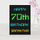 Den här enkla och roligt-hälsningskortet har ett meddelande som "LYCKLIG 70 BIRTHDAY, SAMANTHA!". Den har också en roligt som är inspirerad av digital datoranvändning. Namn på framsidan och meddelandet på insidan kan anpassas. Den kan skickas eller ges till någon som firar sin 70-årsdag och som kanske arbetar som systemadministratör, datorprogrammerare, nätverksadministratör, elnätsadministratör, utvecklare av software eller som på annat sätt har nytta av att använda datorer. [~Z0000100]