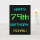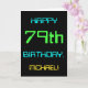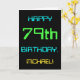 Den här enkla och roligt-hälsningskortet har ett meddelande som "LYCKLIG 79 BIRTHDAY, MICHAEL!". Den har också en roligt som ser inspirerad ut av digital datoranvändning. Namn på framsidan och meddelandet på insidan kan vara personlig. Den kan skickas eller ges till någon som firar sin sjuttionionde årsdag och som kanske arbetar (eller arbetar före pension) som systemadministratör, datorprogrammerare, nätverksadministratör, elutvecklare, software eller som på annat sätt har nytta av att använda datorer. [~Z0000100]