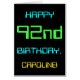 Den här enkla och roligt-hälsningskortet har ett meddelande som "LYCKLIG 92:a BIRTHDAY, CAROLINE!". Den har också en roligt som ser inspirerad ut av digital datoranvändning. Namn på framsidan och meddelandet på insidan kan vara personlig. Den kan skickas eller ges till någon som firar sin nittioandra födelsedag och som kanske arbetar (eller arbetar före pension) som systemadministratör, datorprogrammerare, nätverksadministratör, elektriskt ingenjör, utvecklare av software eller som på annat sätt har nytta av att använda datorer. [~Z0000100]