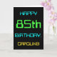 Den här enkla och roligt-hälsningskortet har ett meddelande som "LYCKLIG 85 BIRTHDAY, CAROLINE!". Dess utseende inspireras av fält i den digitala datoranvändningen. Namn på framsidan och meddelandet på insidan kan vara personlig. Den skulle kunna skickas eller ges till någon som firar sin åttiofemte födelsedag och som kanske arbetar som databasadministratör, datorprogrammerare, nätverksadministratör, utvecklare av software, elanvändare ingenjör eller som på annat sätt har nytta av att använda datorer. [~Z0000100]
