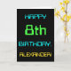 Den här enkla och roligt-hälsningskortet har ett meddelande som "LYCKLIG 8:e BIRTHDAY, ALEXANDER!". Dess utseende inspireras av fält i den digitala datoranvändningen. Namn på framsidan och meddelandet på insidan kan vara personlig. Den kan skickas eller ges till någon som firar sin åttonde födelsedag och som kanske arbetar som systemadministratör, datorprogrammerare, nätverksadministratör, elnätsadministratör, ingenjör, utvecklare av software eller som på annat sätt har nytta av att använda datorer. [~Z0000100]